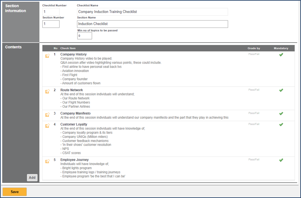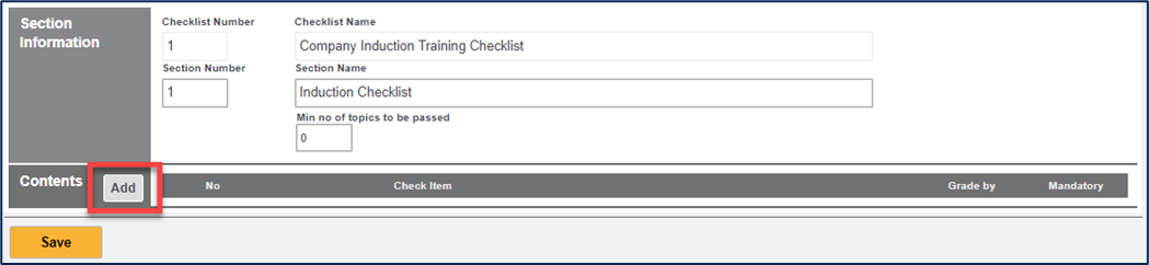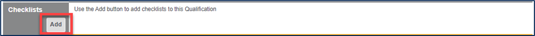 13. If you selected Revalidate by Check within the Revalidation section then you are able to add a checklist for this qualification into Centrik. Within the Checklists section, click on the ‘Add’ button