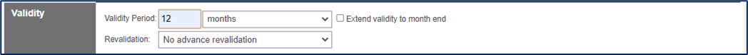 12. Select from the available this the validity period of this qualification, along with a revalidation period (if required), you can also choose if this qualification extends to month end by selecting the check box.