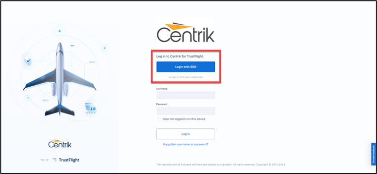 If your organisation is utilising the single sign on (SSO) option of Centrik then the below button will need to be clicked to allow you to sign into Centrik.