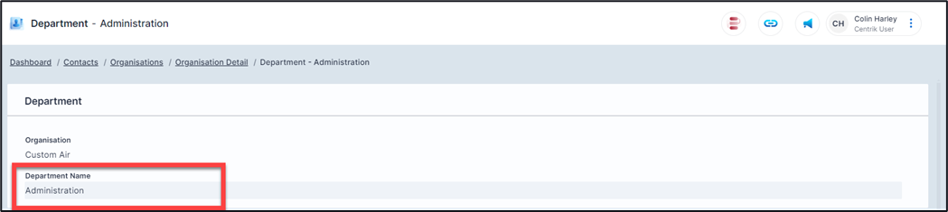 2. Click on the Department Name (this puts the page into Edit mode)