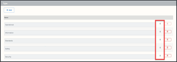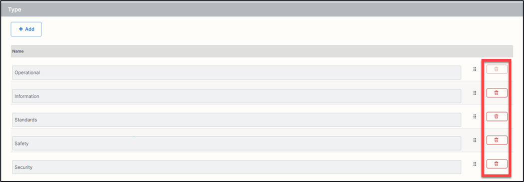 2. Select the ‘Delete / waste bin icon’ at the end of the type.