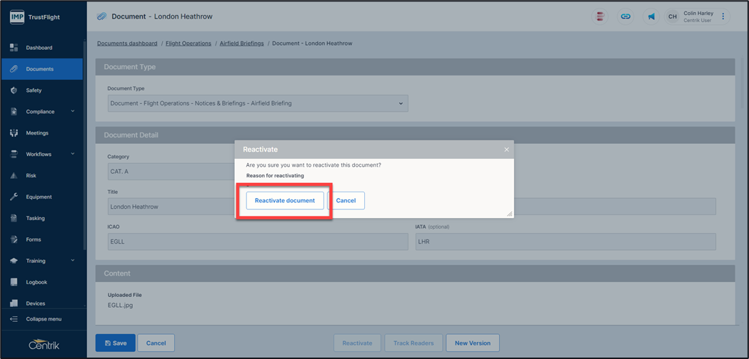 6. Click on the ‘Reactivate document’ button
