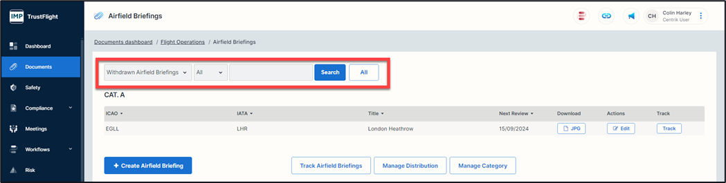 Although withdrawn the document can still be accessed through an individual’s documents page, selecting the option to view withdrawn documents in this area by using the search drop down function.