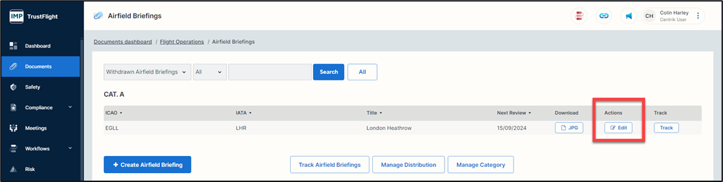 1. Click on the ‘Edit’ button of the document you wish to withdraw from your document’s summary page.