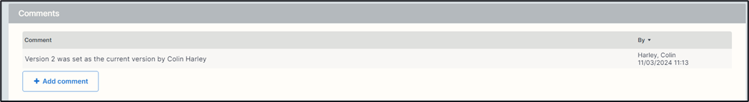 You will see that a new version has been created and at the same time the previous version is archived. The comments box is also populated to denote this change.