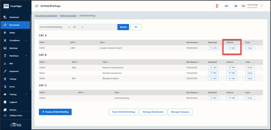 1. Select the document you wish to update or create a new version of by clicking on the Edit button via the subsystem summary page.