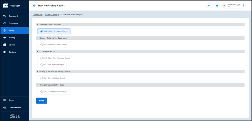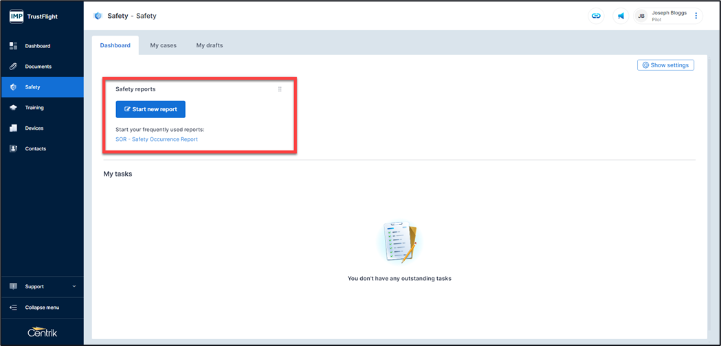 Once a report is submitted the Safety Manager will receive an email notification alongside Centrik system notification. The submitter will also be able to view the progress of their submitted safety case.