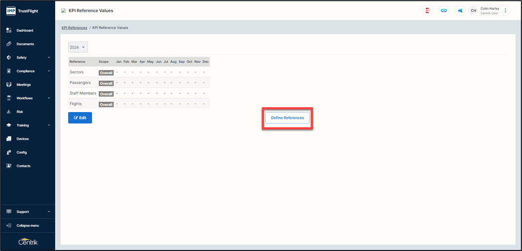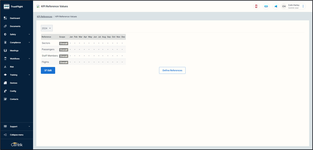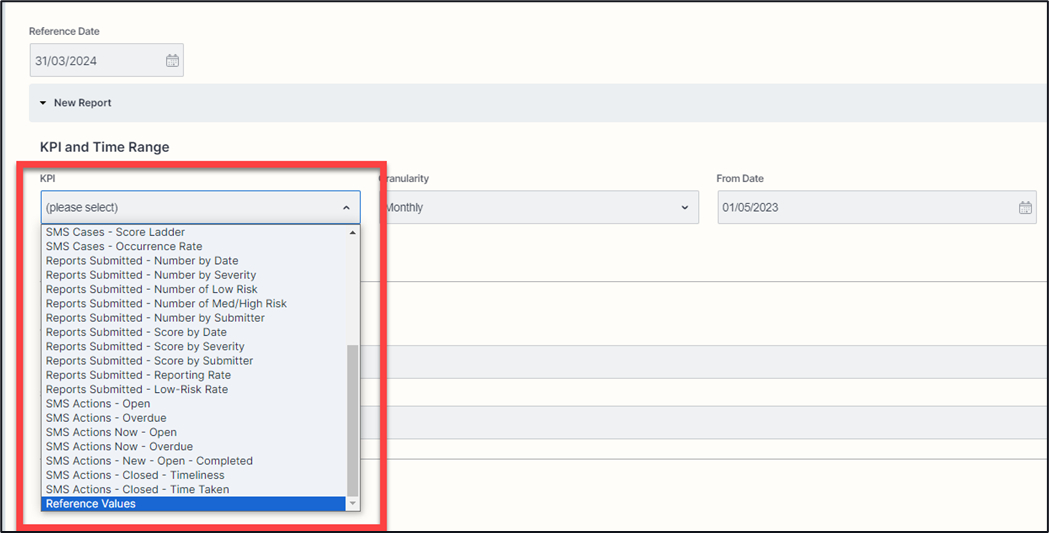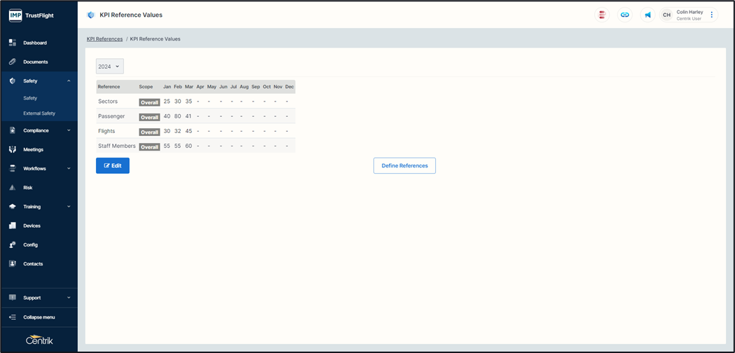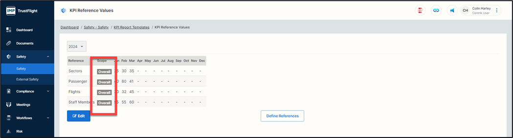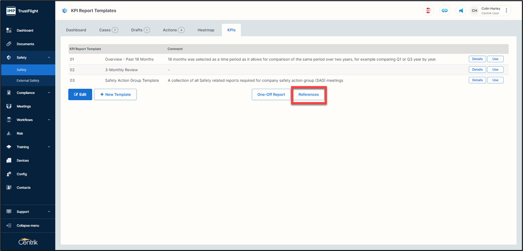 When values have been entered you are able to pull reports on these by using the ‘References’ selection in the KPI breakdown.