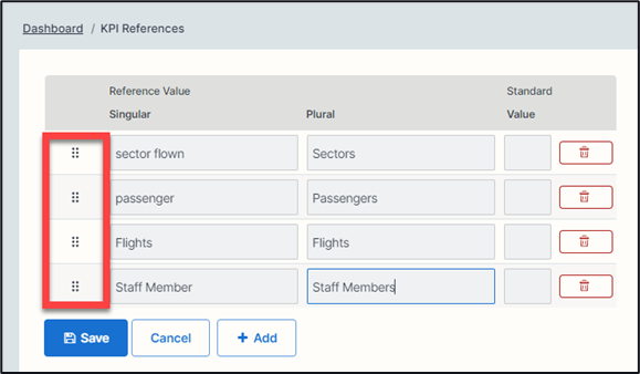 As in other modules the six dots on each value line allow you to move the order of the references (by using drag & drop for each data line).