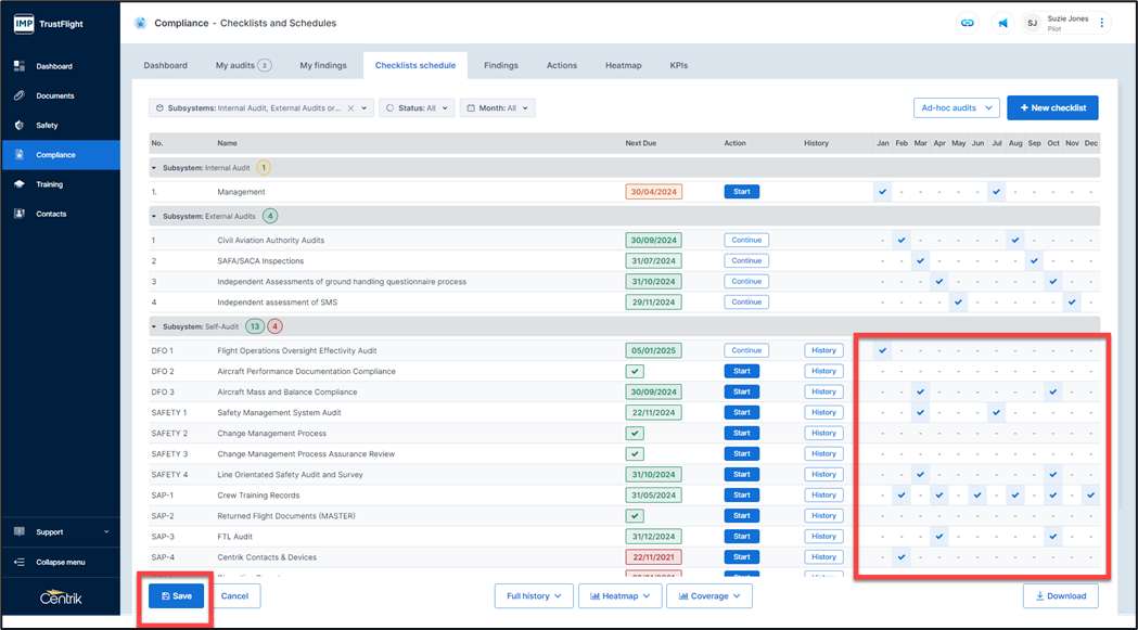 From the main checklist schedule landing page, you can schedule your audits using the calendar months (this can beset to 12 or 24 months (Config required).