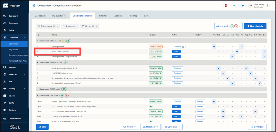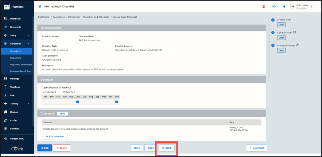 Alternatively, you can start an audit from within the checklist itself, this will allow you to run multiple audits of the same checklist.