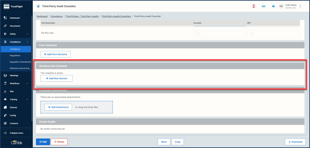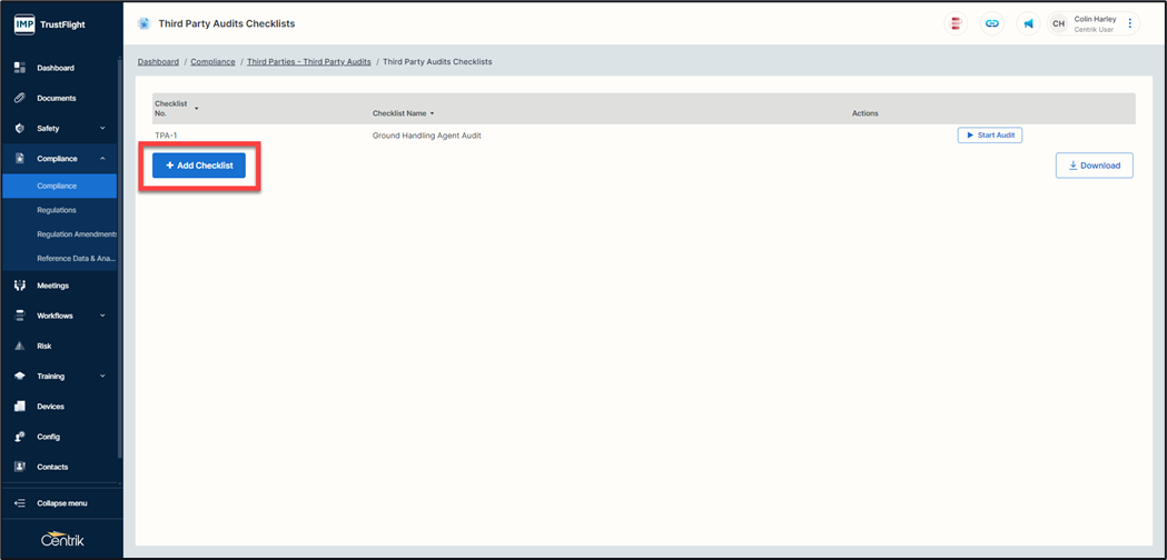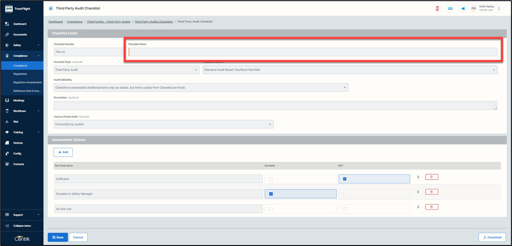 Checklist Name - The naming associated to this checklist. For example, Catering, Fuel or Ground Handling providers. This is your overall title for the checklist so think about the highest hierarchy here