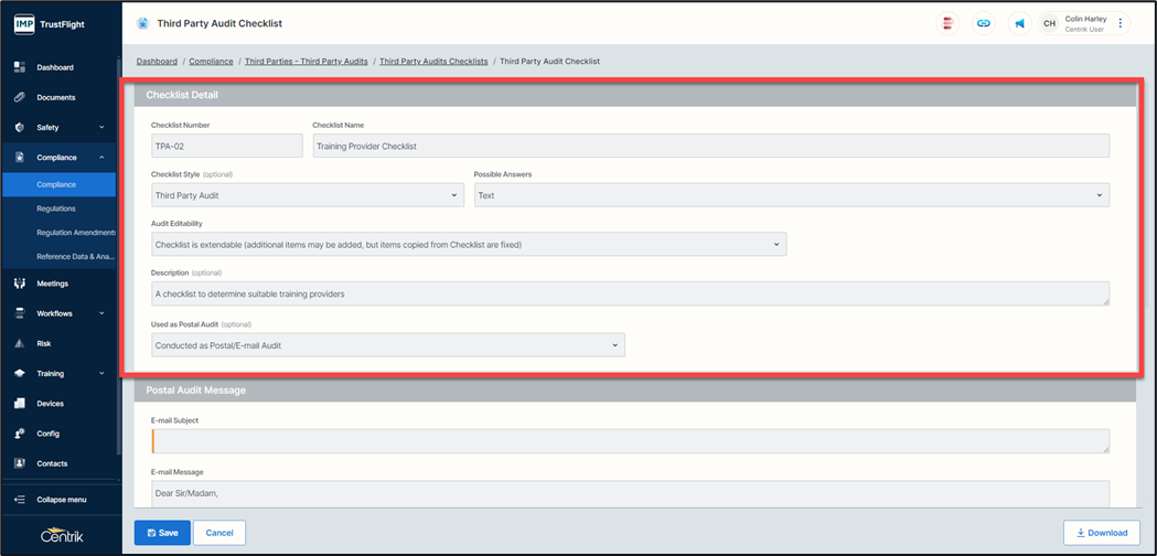 Checklist Number - The numbering of where this checklist sits in your overall checklist creation (usually prefixed with TPA but can be overtyped)