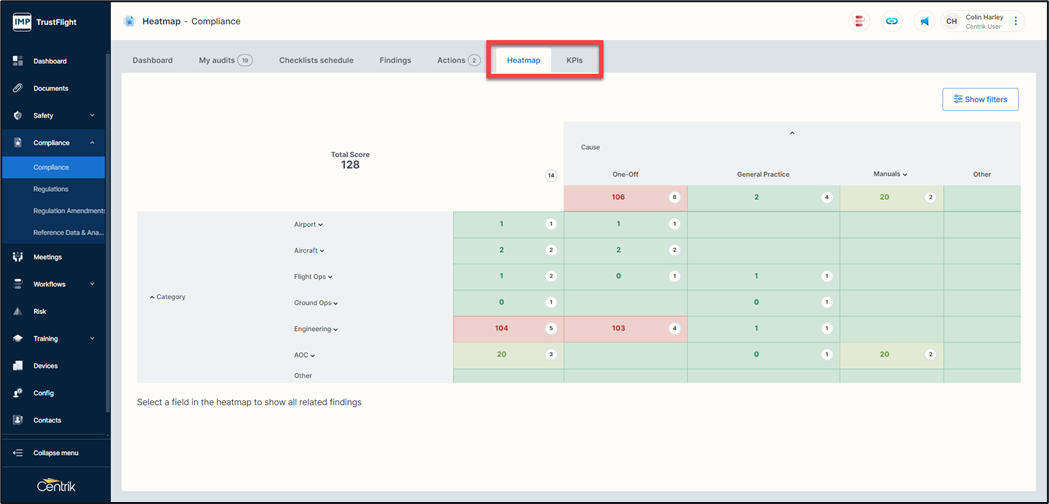 In the same way as the Safety module houses the ability to view a heatmap and view / create KPIs for reporting.
