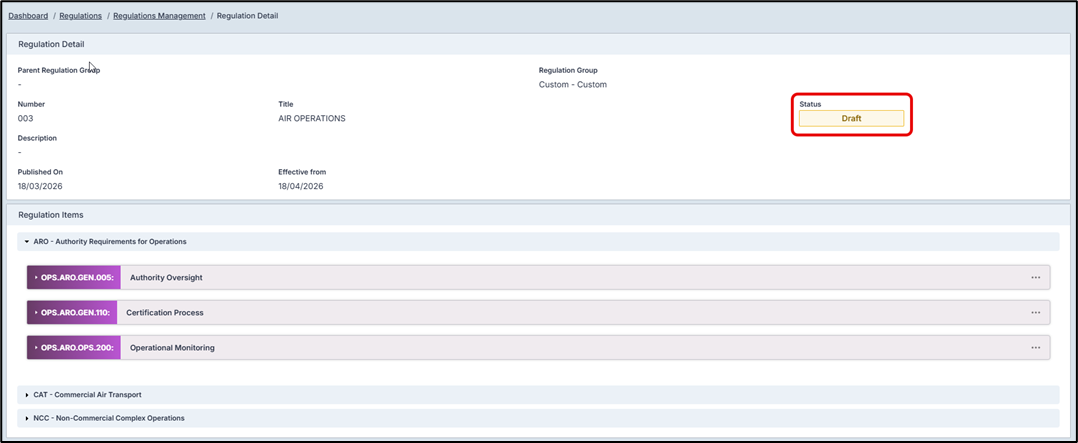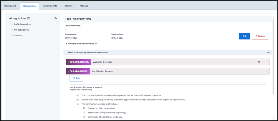 Once a regulation has been created and published, it can be updated using Regulation Amendments.