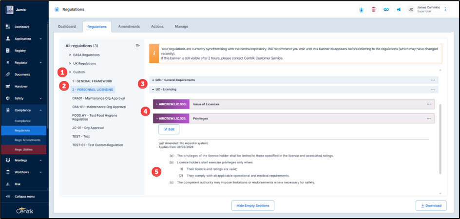 Custom Regulations are regulations created and managed within your organisation’s Centrik site. They enable you to define, control, and maintain custom regulatory content in a structured and traceable way.