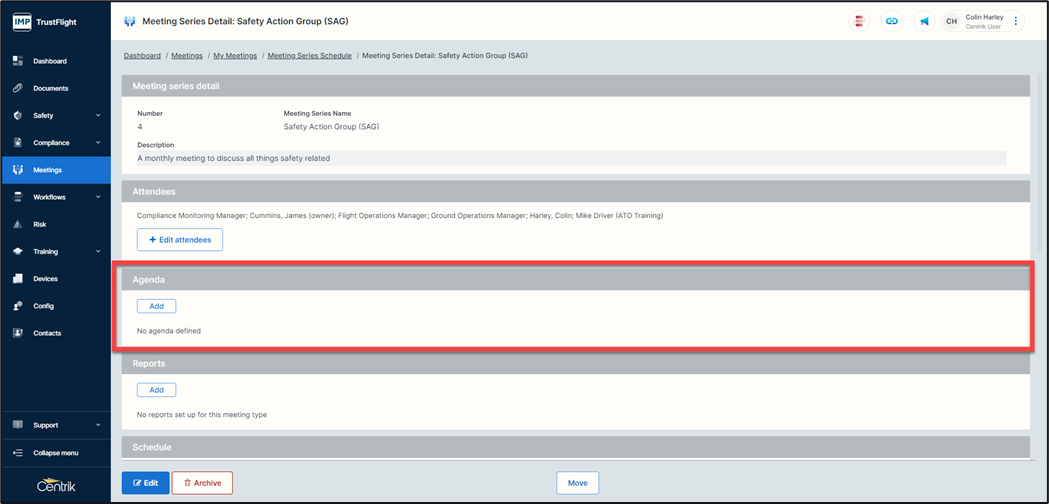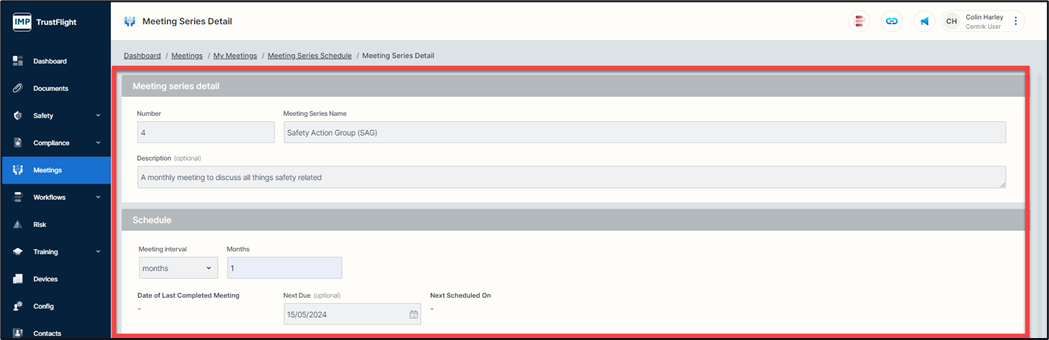 When creating a Meeting Series, you are creating a template for all future meetings of this type, this allows you to create a consistent meeting format that includes agenda items and individuals that regularly attend, these can then be altered for each specific meeting that occurs.