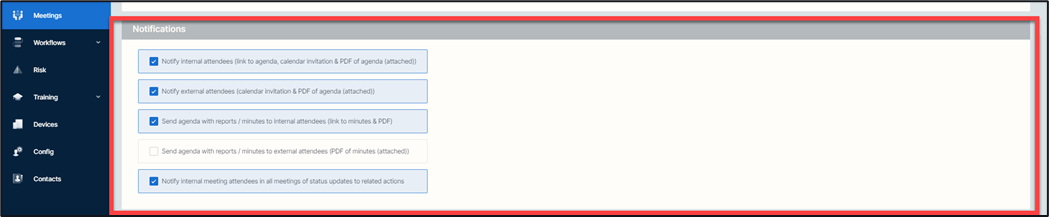 Send agenda with reports / minutes to internal attendees – The option to send the agenda and any reports to an internal attendee, providing a link to the minutes and pdf