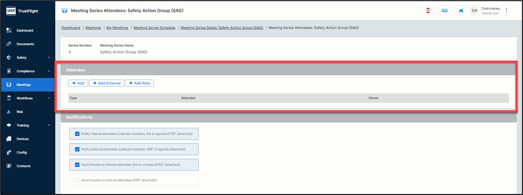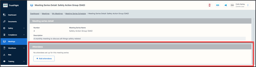 *Remember these attendees are the regular attendees for this meeting type and form part of the meeting series template, additional attendees can be added or removed from each specific meeting when it has been scheduled.