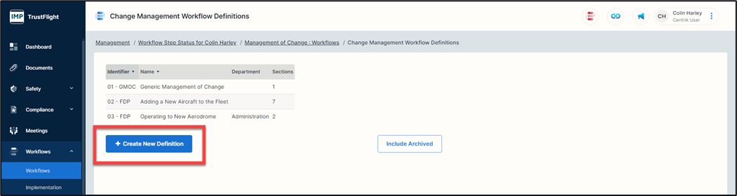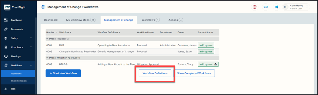 Prior to starting an MOC a workflow definition will need to be created, this can then be used as template for large scale business changes of the same type, this means that there is a consistent MOC model used for workflows of the same type, as an example adding a new aircraft to your fleet or changing your nominated post holder.