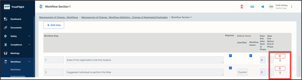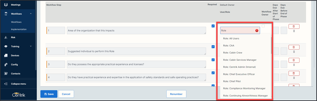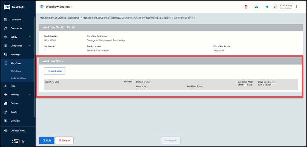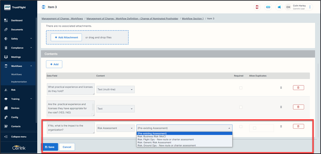 Risk Assessment – the ability to link an existing Centrik risk assessment to this step or a template risk assessment
