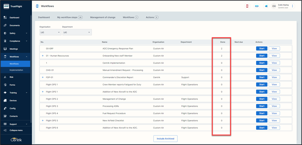 Under the column marked Done is a number indicator, this denotes how many workflows of that type have been completed.