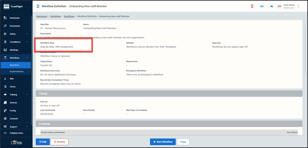 Step by step with Assignment is created in the same way as an All-in One (Checklist), and a Step-by-Step workflow, however in this style of workflow you have the ability to assign a step to an individual, a department, or a role.