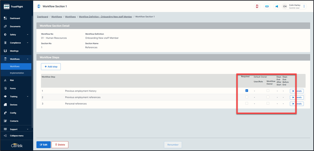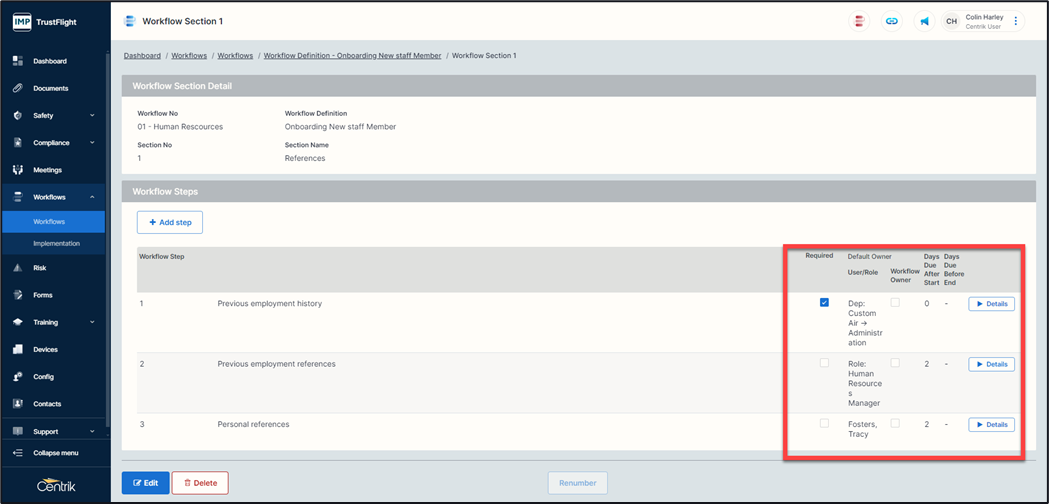 It is also possible to add users, roles, or departments to individual workflows after they have started. Start the workflow and use the ‘Edit’ button to add in the User/Role information, these individuals will be notified via Centrik and via email.