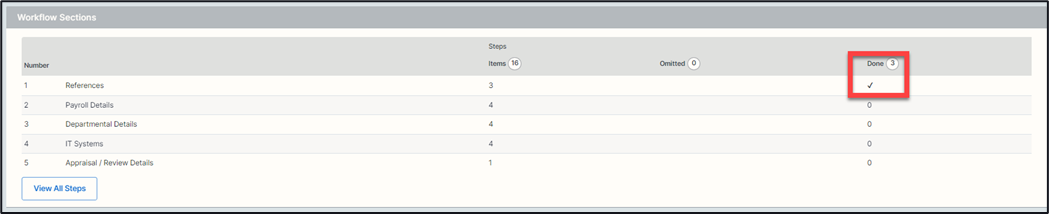 You can click each section individually to complete or click on the ‘View All Steps’ button to display all of sections and step items.