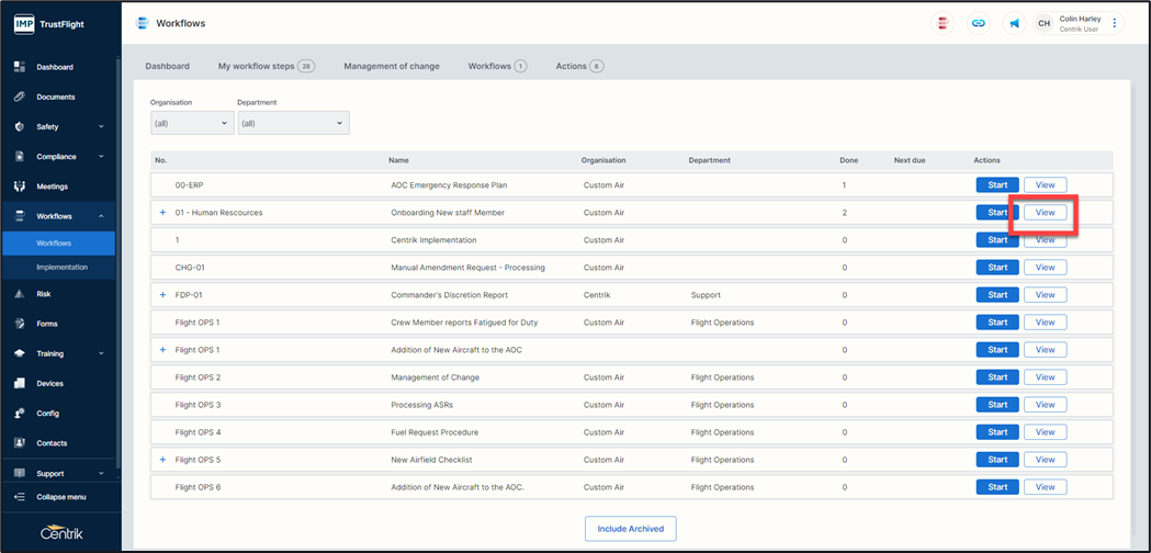 1. Click on the ‘View’ button of the workflow you wish to view