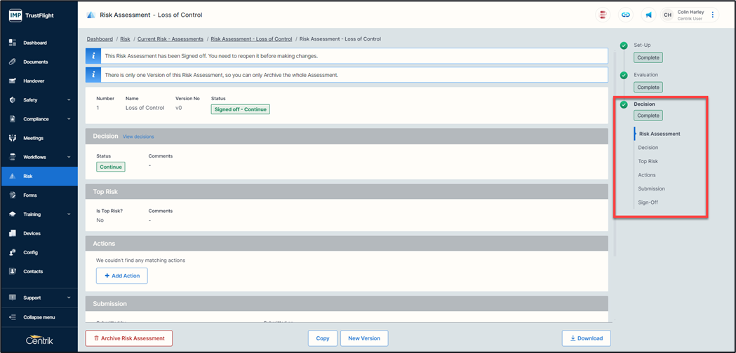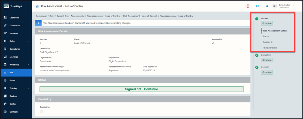 Risk assessments can be accessed by clicking on the name of the risk assessment, risk assessments have three phases.