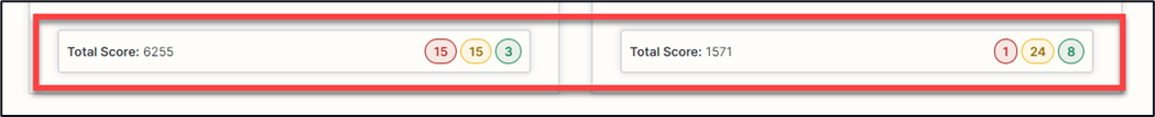 The Total Score represents the cumulative score of all scored consequences, whilst the indicators to the side denote the number of consequences scored within that colour banding (colours driven by your risk matrix).