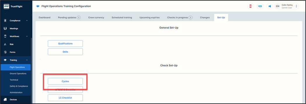 1. Click on the ‘Cycles’ button