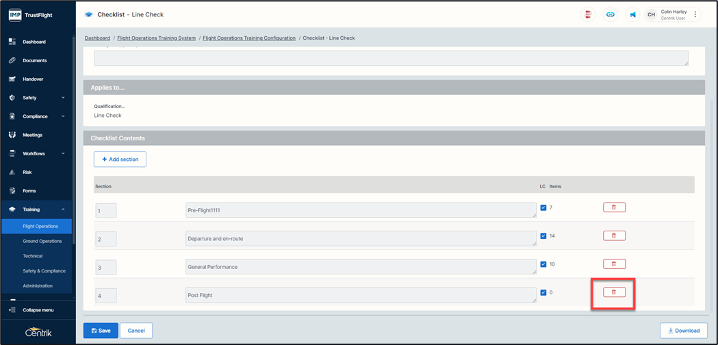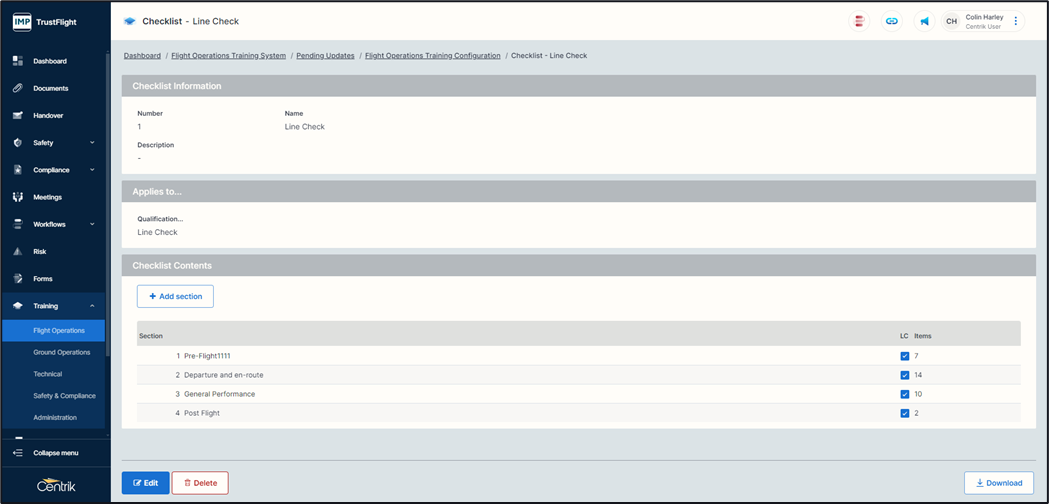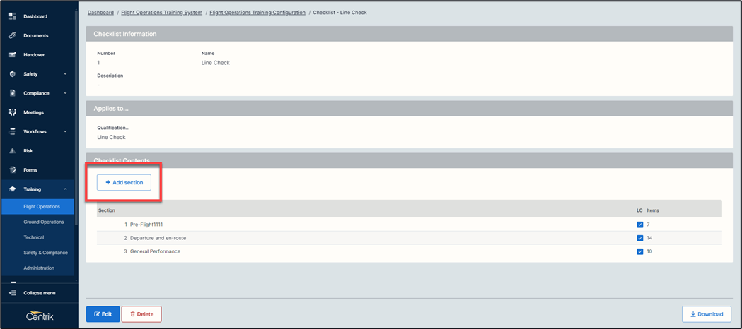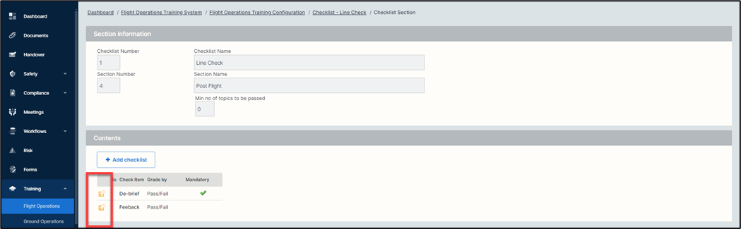 Clicking on the ‘Edit’ button will allow you to rename any current sections, or to change the ordering as you see this checklist, changing the number will re-order the checklist after saving.