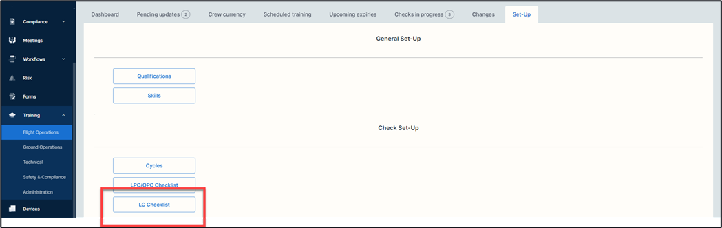 The Master Checklists for LPC/OPC and LC are found within the appropriate buttons, both are checklists, and both can be added to, and amended in the same way.