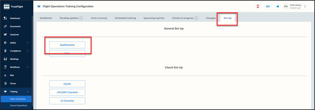 1. Click on the ‘Setup’ tab and click on the ‘Qualifications’ button
