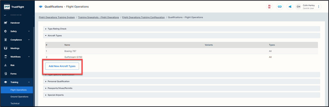 One key area within training is linking qualifications to aircraft, or aircraft types. This enables a qualification to be Type Specific for qualifications such as LPC/OPC, Line checks and MRO authorisations.