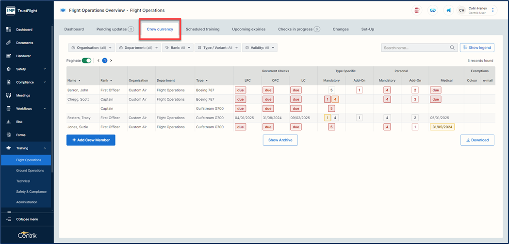 3. Click on the ‘Crew Currency’ tab