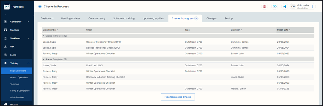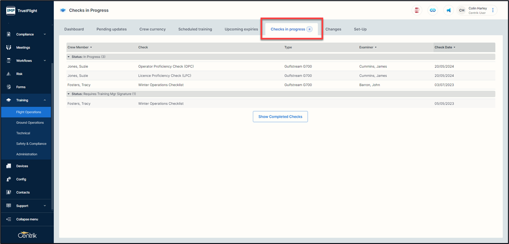 All checks, and their stages will be displayed, there is a separate area for completed checks (via the ‘Show completed checks’ button).