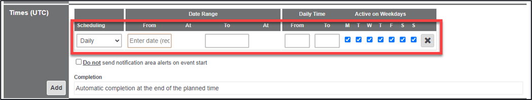 5. Within the Times (UTC) section you have two options available