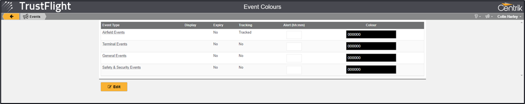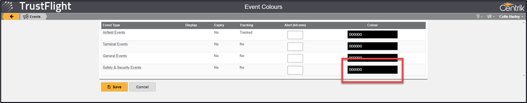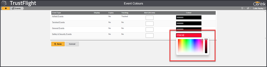 3. Click on one of the sections titled Colour for one of the displayed event types