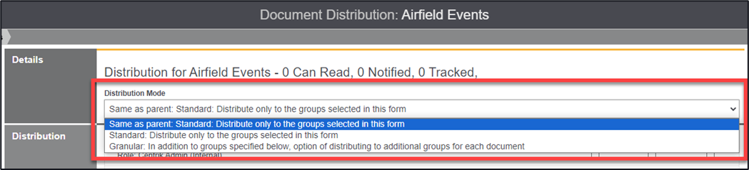 Distribution settings can only be adjusted through the Documents module.