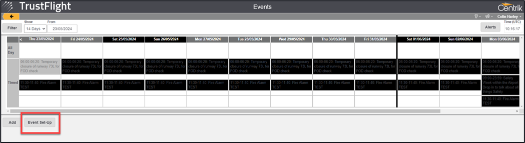 1. Click on the ‘Event Setup’ button