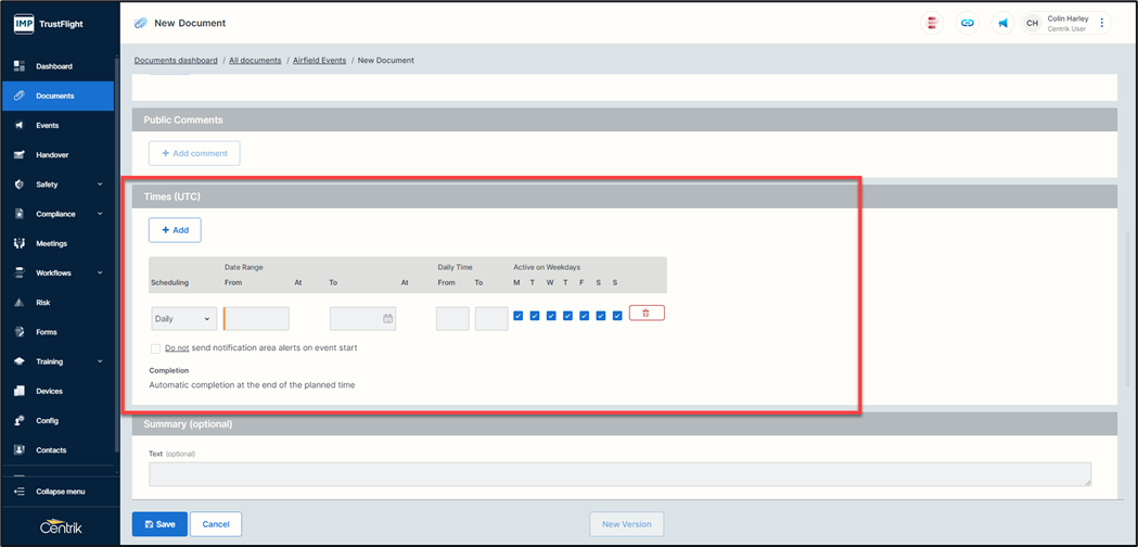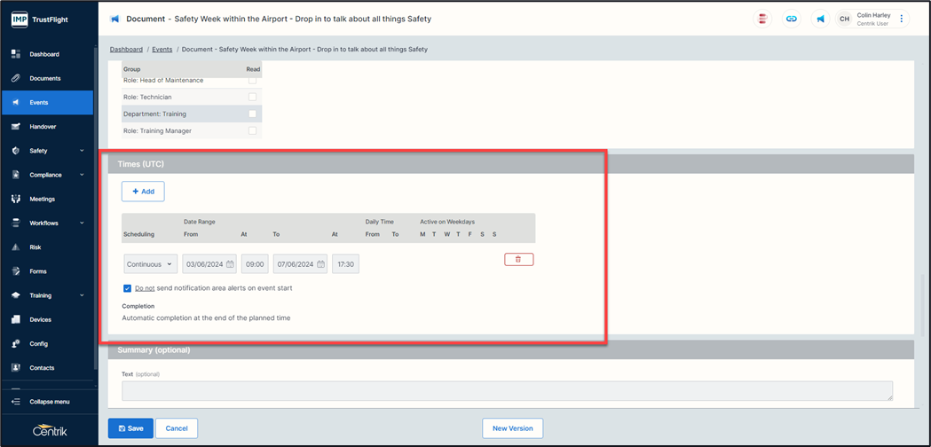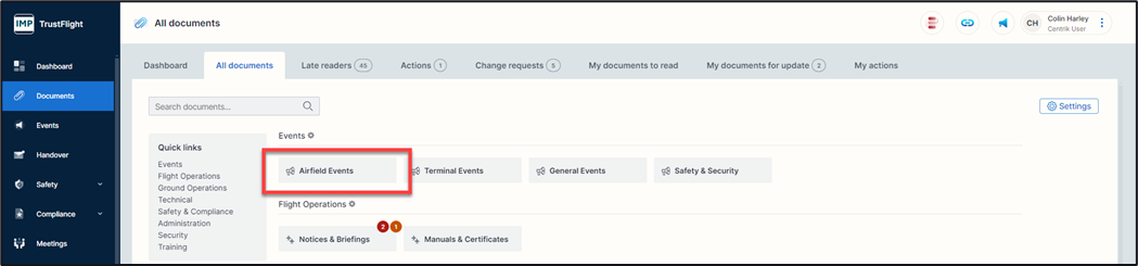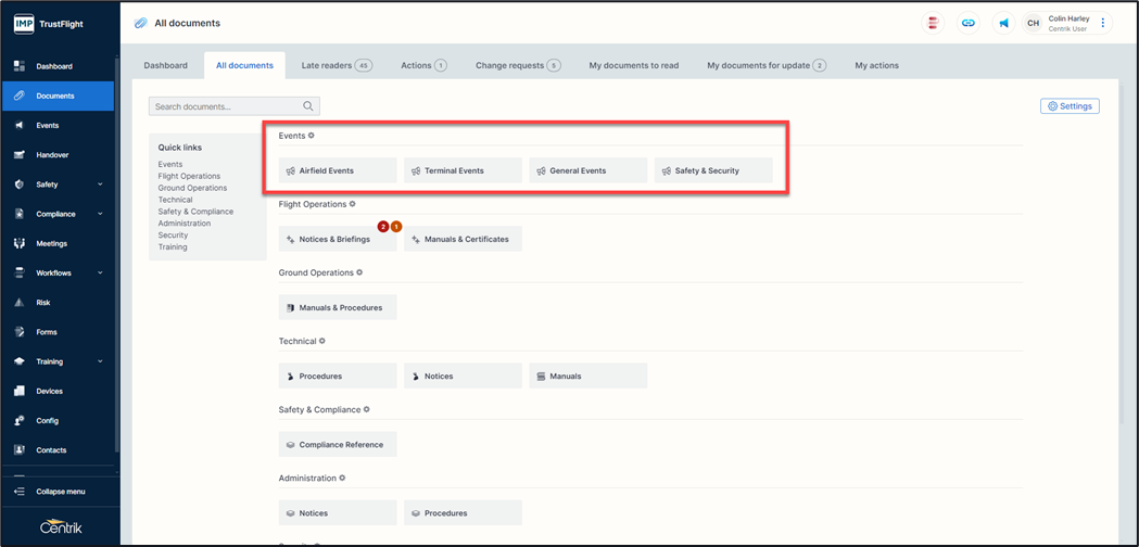 Prior to creating events through the Events module, it is advised to create an Events folder or subfolders within the documents module (folders will need to be configured as Event type folders by the TrustFlight Support team). It is suggested that granular distribution is also used.