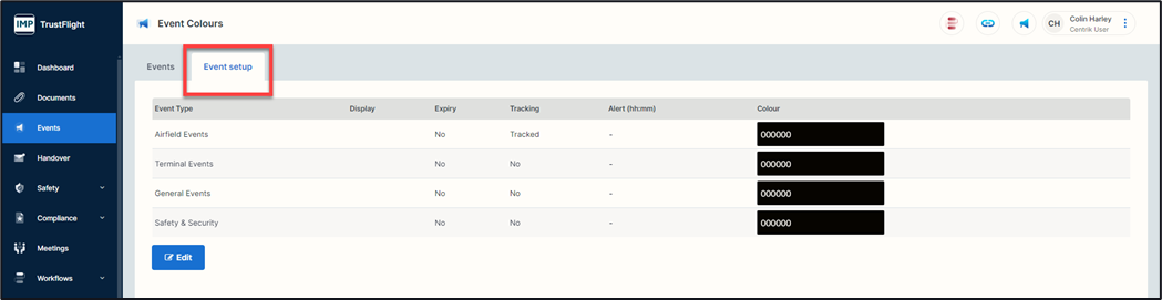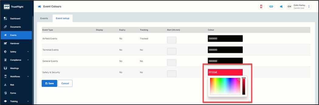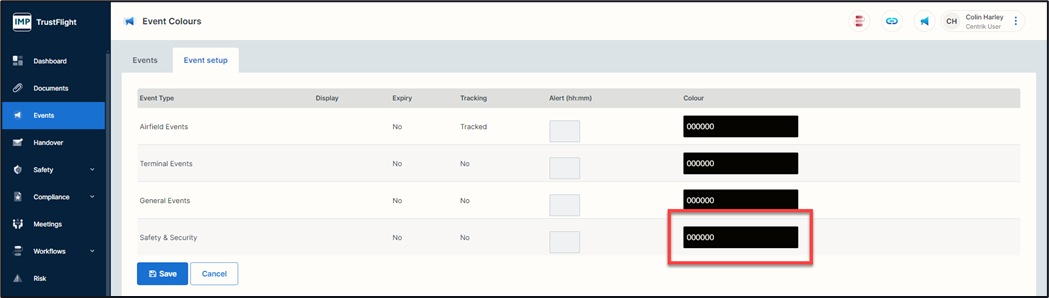 3. Click on one of the sections titled Colour for one of the displayed event types