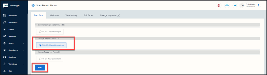 Start form: