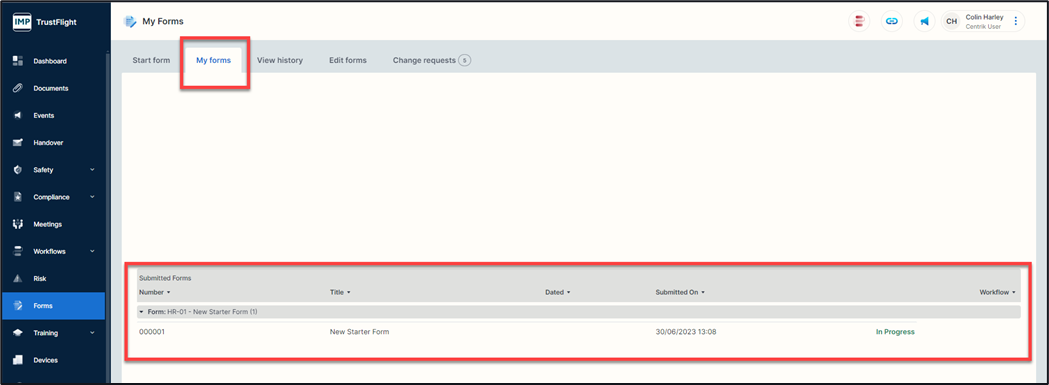 The My Forms area will be where all your individual forms are kept.