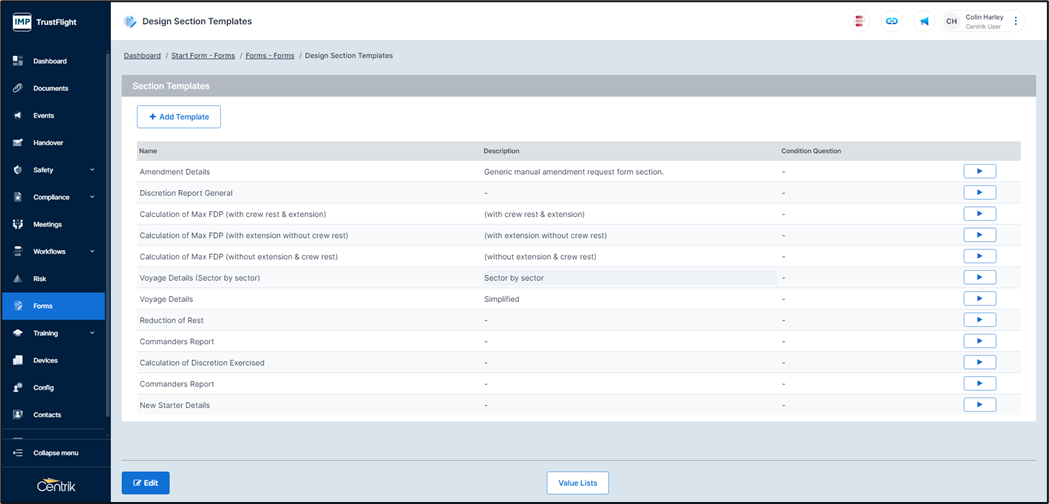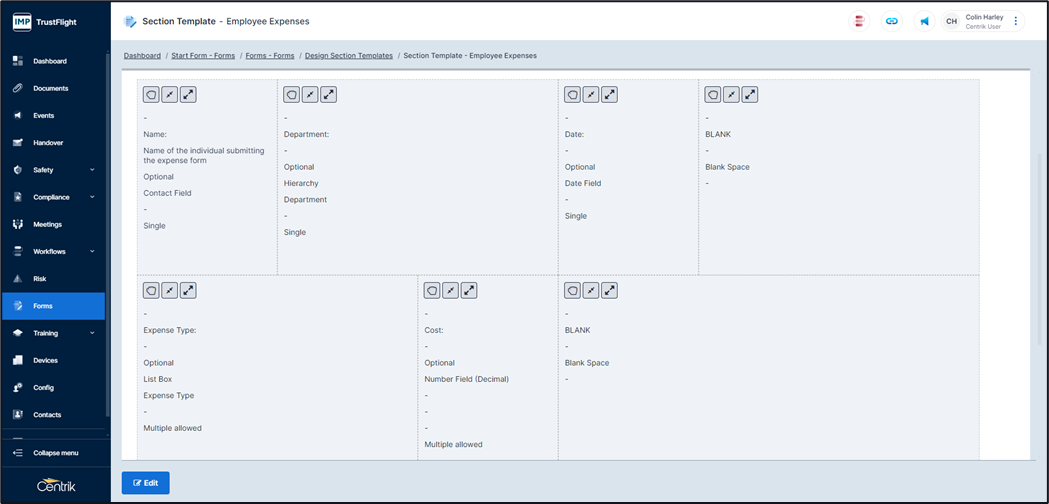 Each form is then made up of sections / templates, again this could be a singular section or multiple sections.