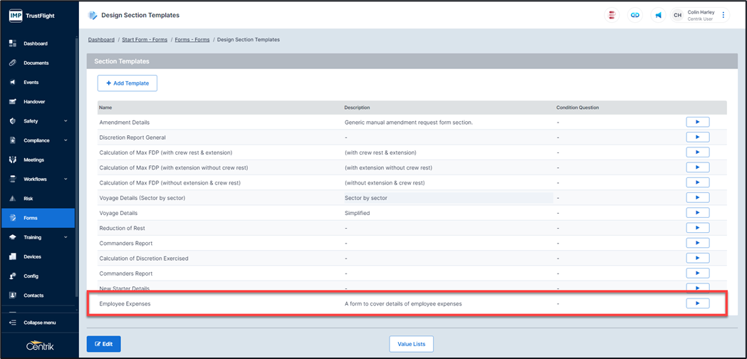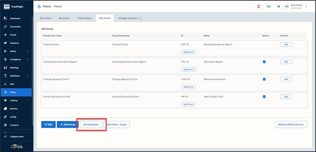 1. From the Forms main landing page, click on the ‘Edit forms’ tab