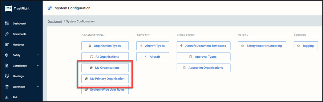 My Primary Organisation – A direct link to my primary organisation.